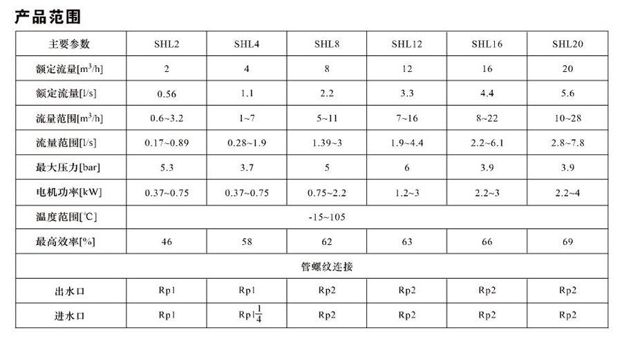 SHL/SHF/SHFT12為臥式多級(jí)非自吸多級(jí)離心泵,配加長(zhǎng)軸電機(jī)。緊湊式結(jié)構(gòu)使泵尺寸很小,軸向入口或徑向出口。