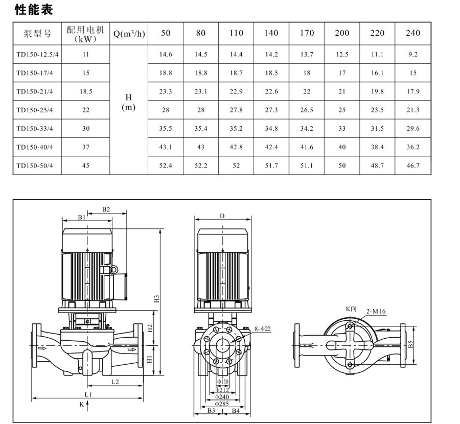 流量:50m3/h~240m3/h